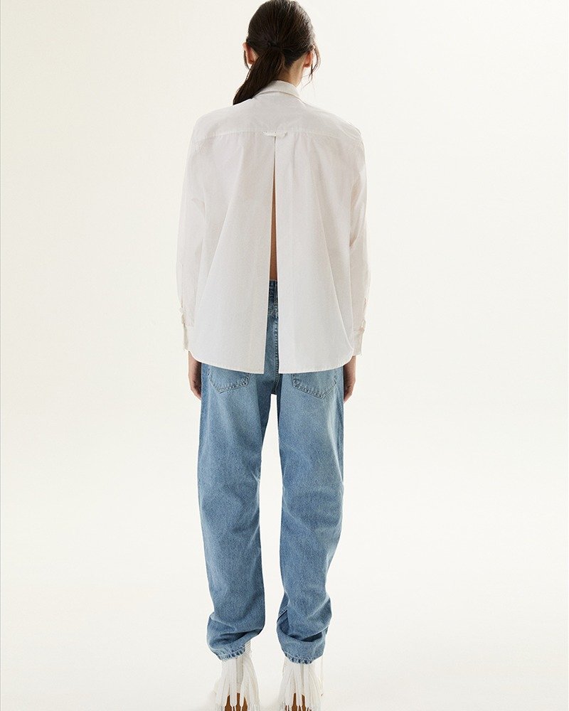 Camisa blanca con espalda abierta.